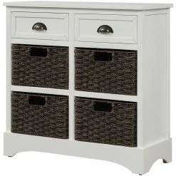 White Rustic Storage Cabinet with Two Drawers and Four Classic Rattan Basket by ATHMILE