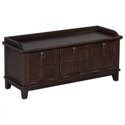 Espresso Storage Bench with Beige Cushion (42.9 in. L x 15 in. W x 19.3 in. H) by ATHMILE