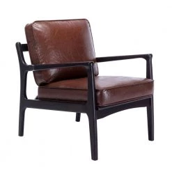 24.4 in. W Brown Mid Century Modern Elegant Accent Wood Frame Armchair (Set of 1) by ATHMILE
