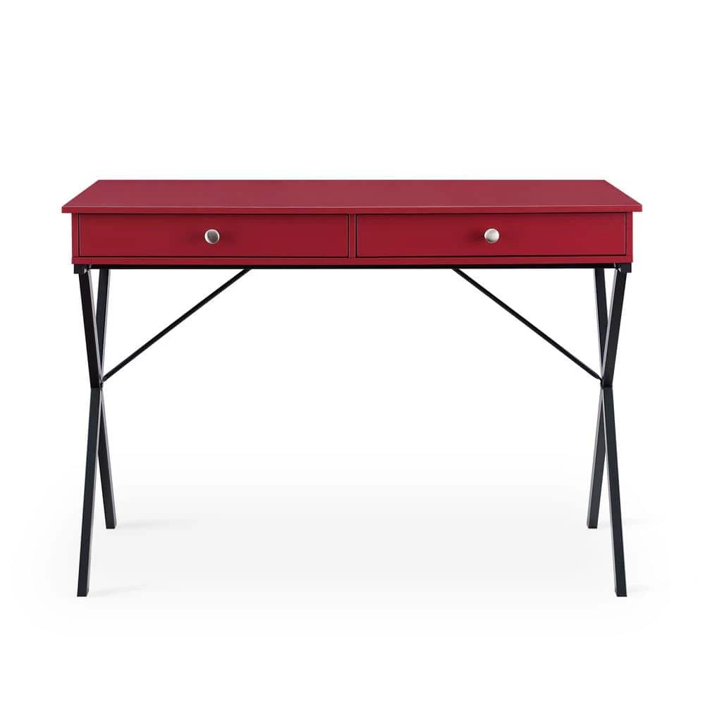 Red 43.2 in. Rectangle MDF Table Top 2-Drawers Writing Desk with Black Stoving Varnish Steel Frame by ATHMILE -ATHMILE Sales Store red athmile writing desks gz w48735116 77 1000