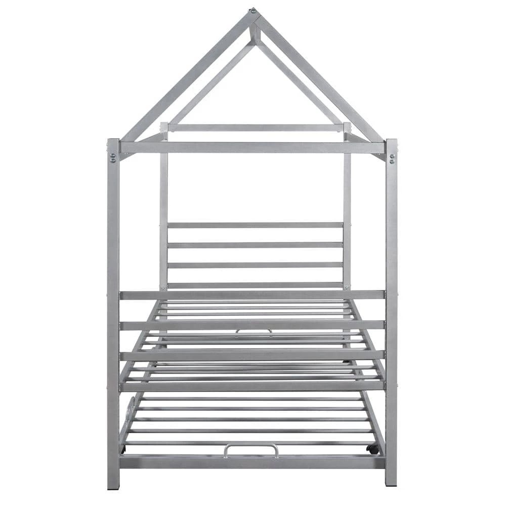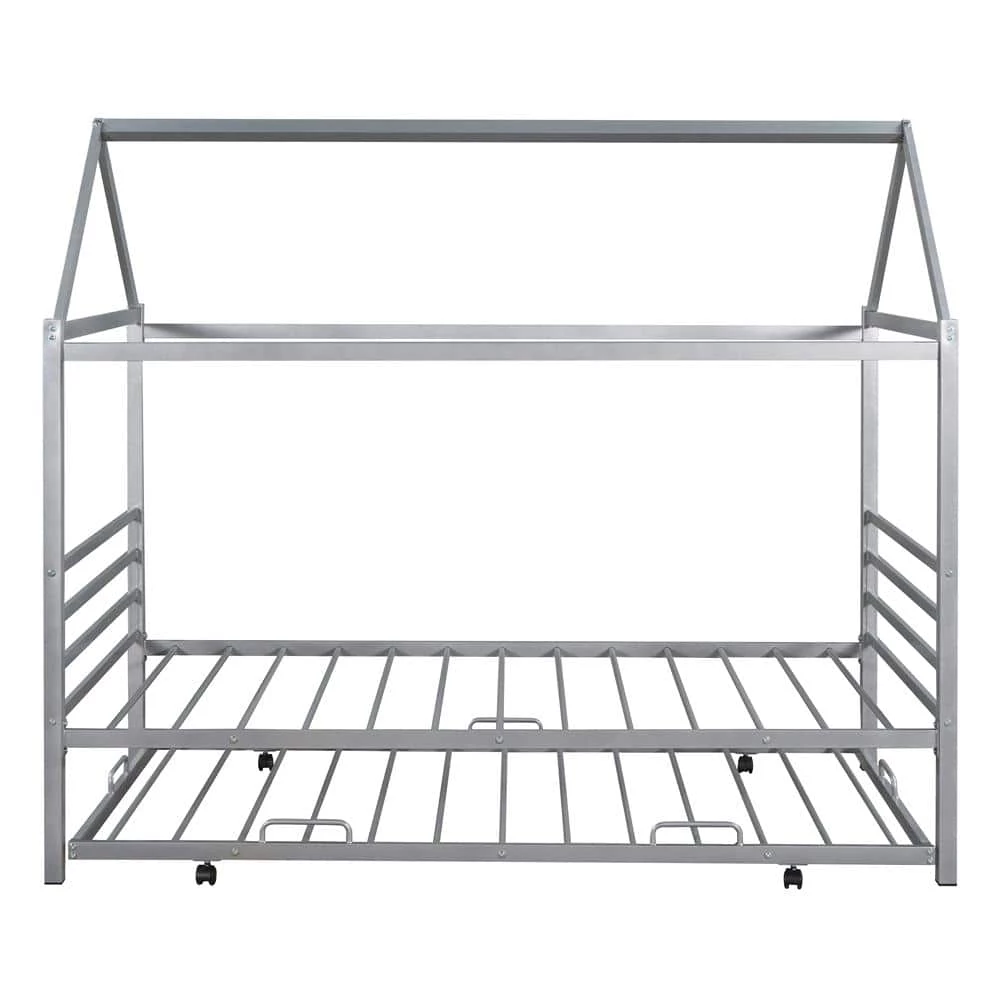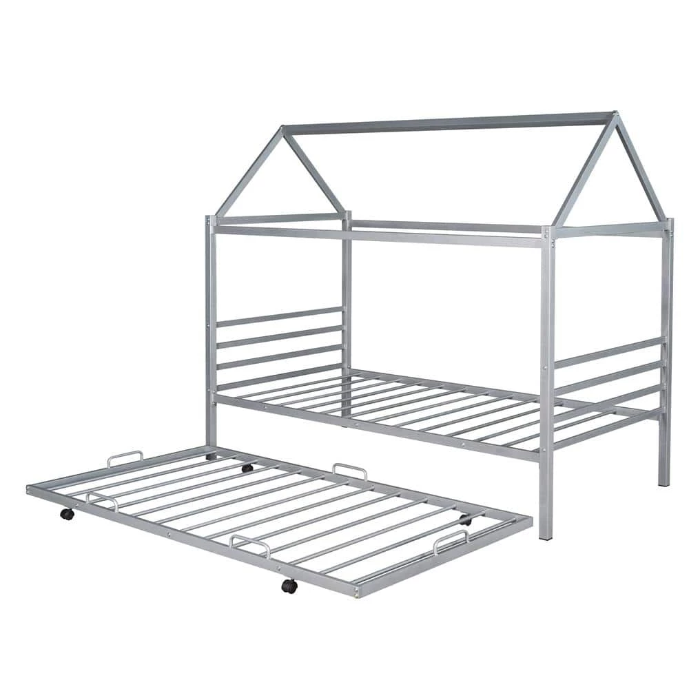 The combination of metal and house shape creates a sleek and modern style. This metal bed gives you with the ultimate combination of strong, durable material and light weight. Host guests without taking up prime real estate with this bed, complete with a rolling trundle bed below for extra sleeping space.