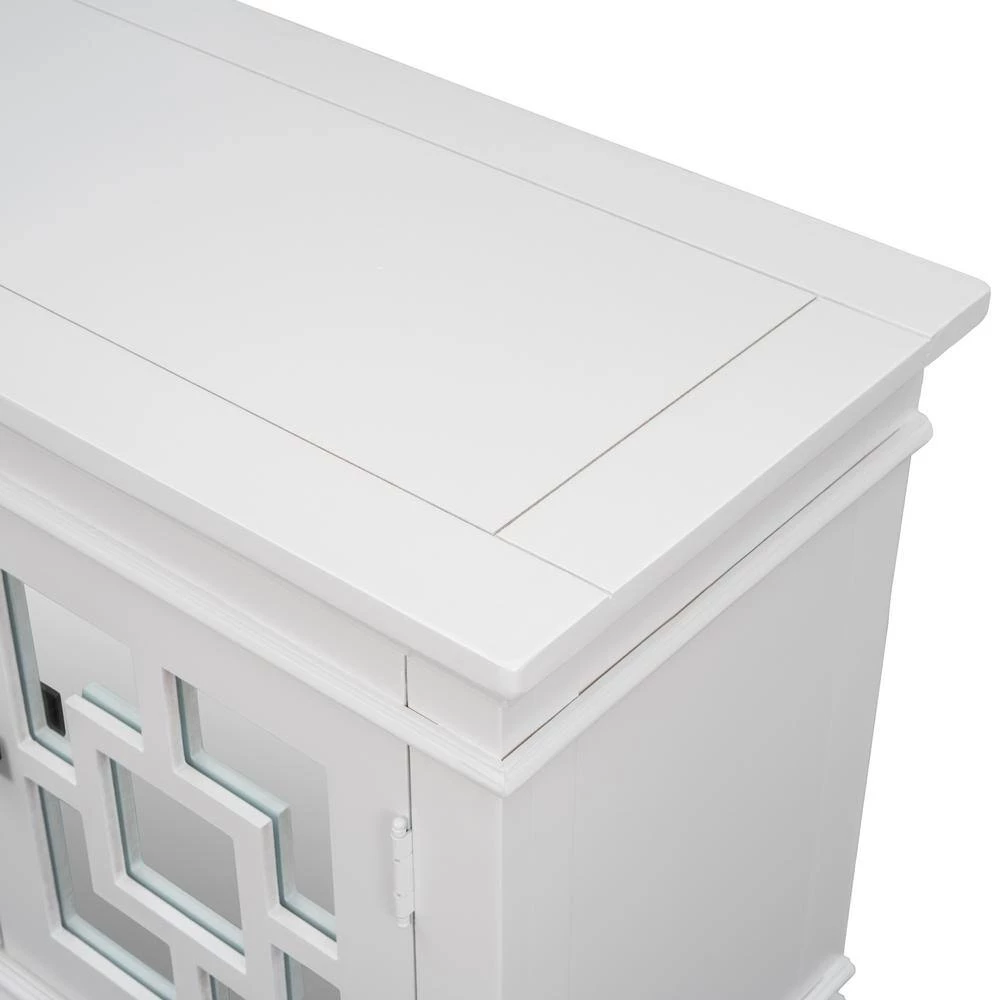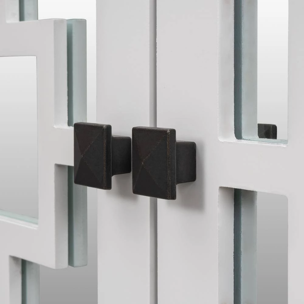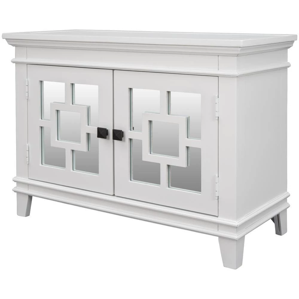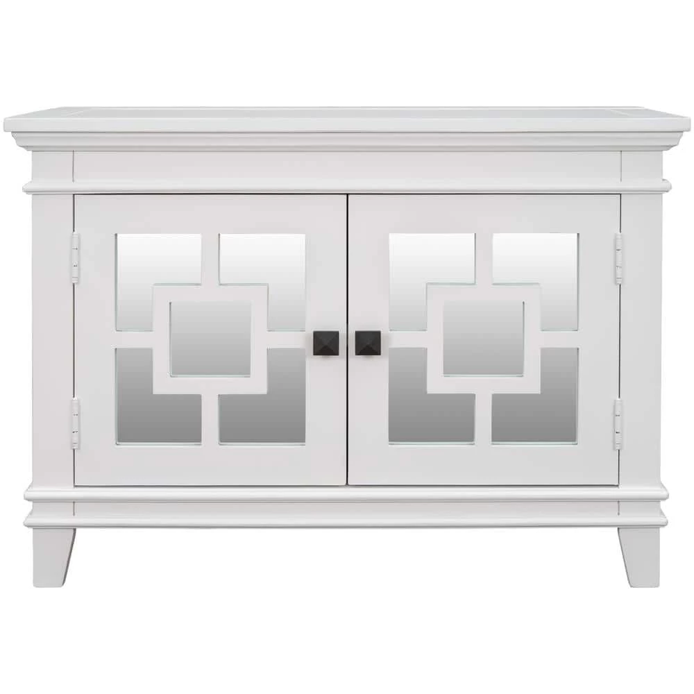 Accent Storage Cabinet Wooden Cabinet with Decorative Mirror Door, Modern Sideboard for Entryway, Living Room, Bedroom.Complete your home hallway, living room or bedroom with this classic 2-door cabinet featuring spacious storage.Crafted with MDF with veneer for top and pine wood for framework, the storage cabinet is solid and durable for long time use. The cabinet provide ideal storage for dishes, books, or board games.
