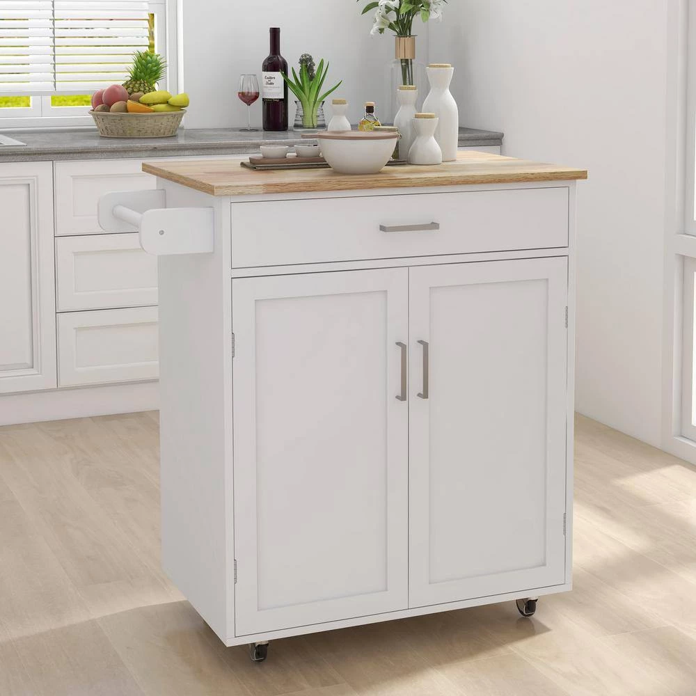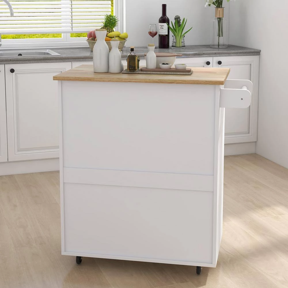 - White kitchen island has a towel rack on one side, you can easily pick up kitchen towel or tissue, it also can be used as a handle when you move cart
