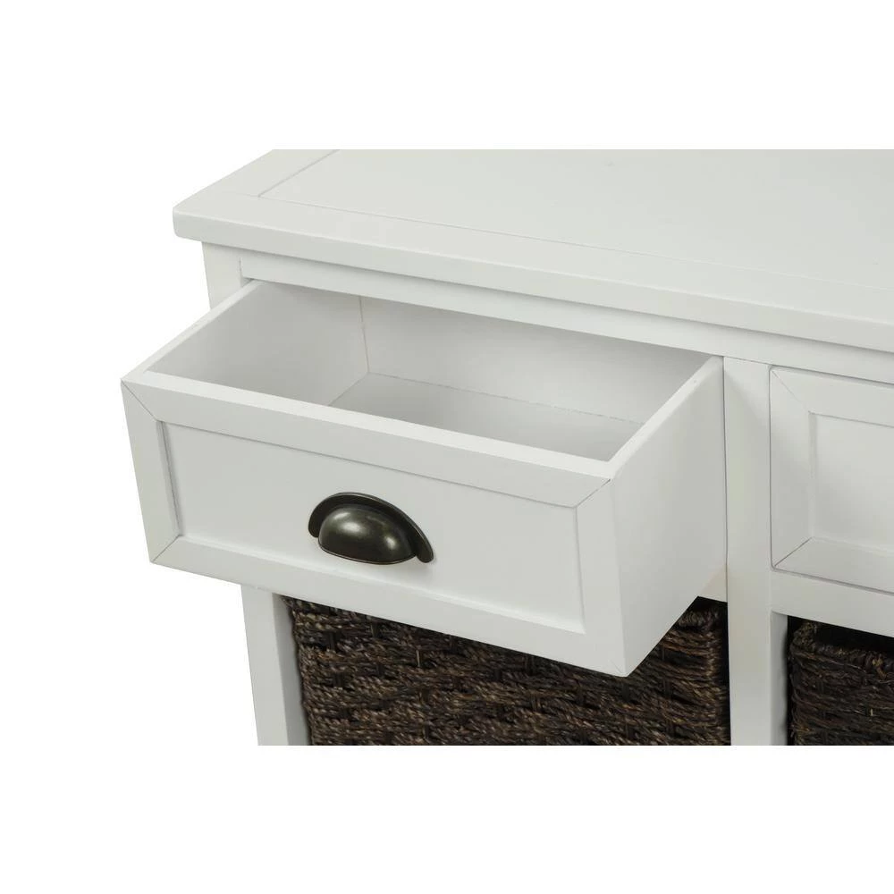 White Rustic Storage Cabinet with Two Drawers and Four Classic Rattan Basket by ATHMILE - Image 4