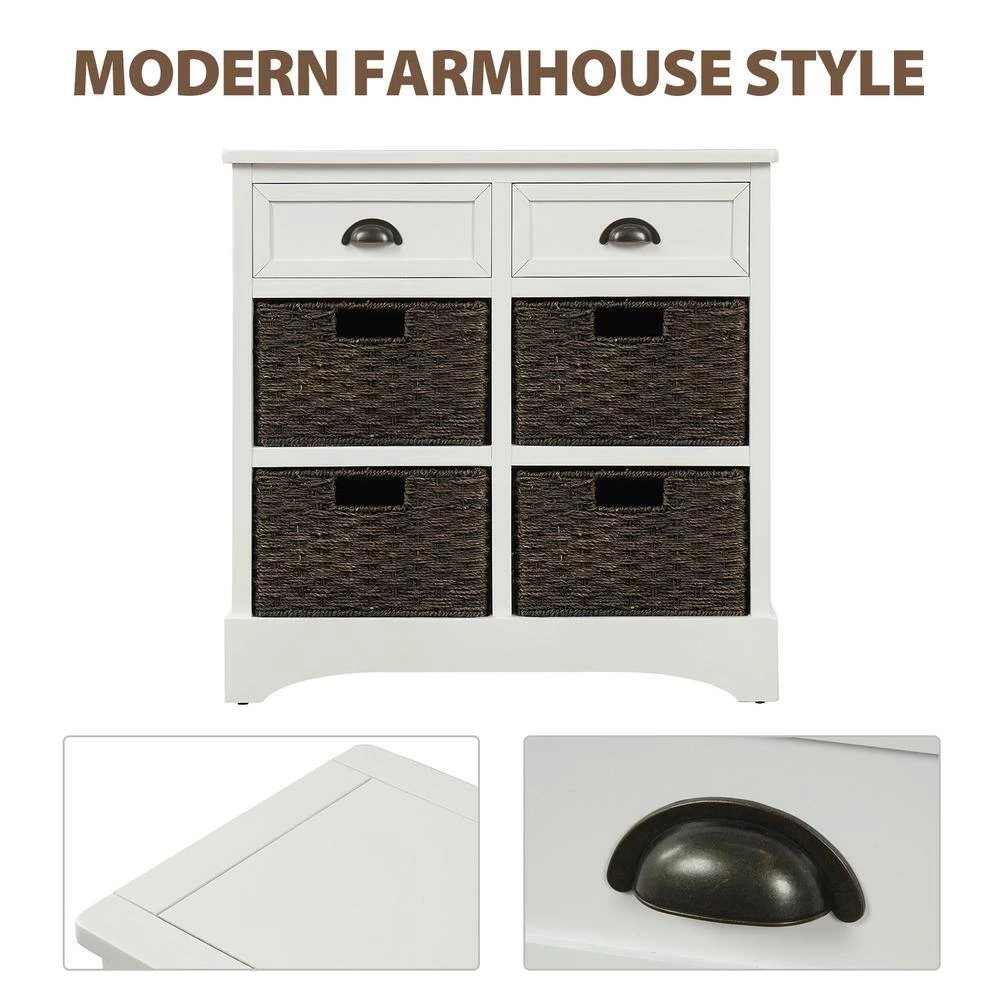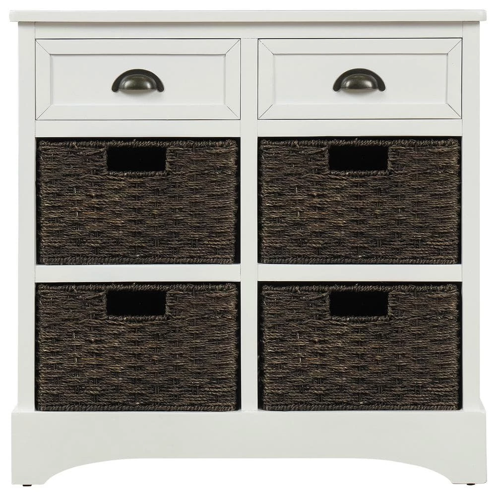 White Rustic Storage Cabinet with Two Drawers and Four Classic Rattan Basket by ATHMILE - Image 2