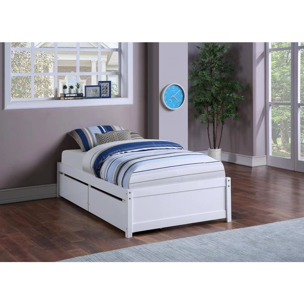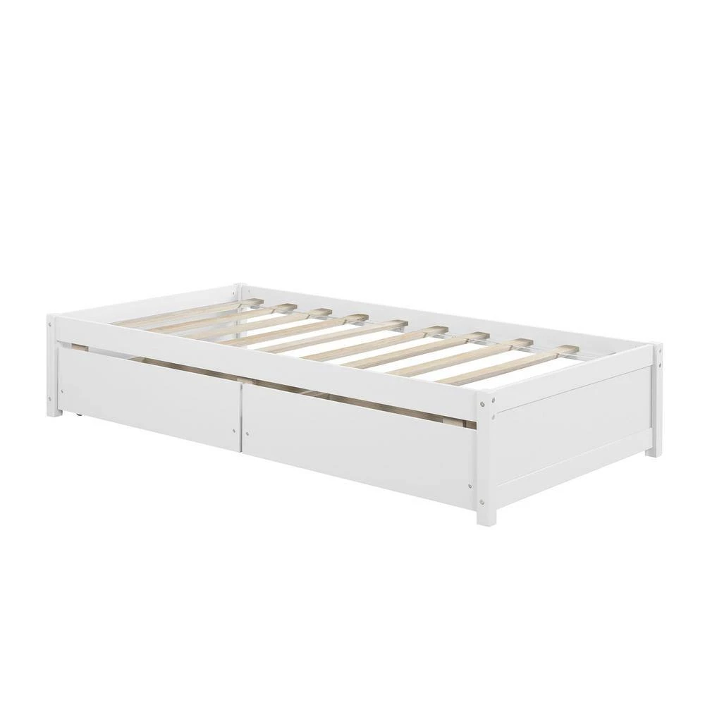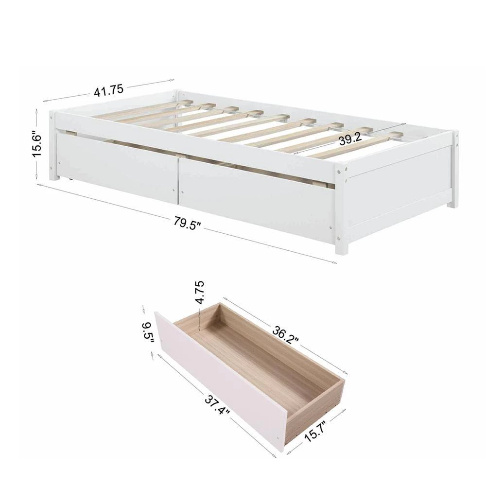 - The twin bed is equipped with 2 capacious drawers, this design fully explores the options to optimize space-saving. The drawers provide ample room for storage of clothes, pillows, toys and other accessories, keeping the room neat and tidy with the pristine organizing function of the drawers