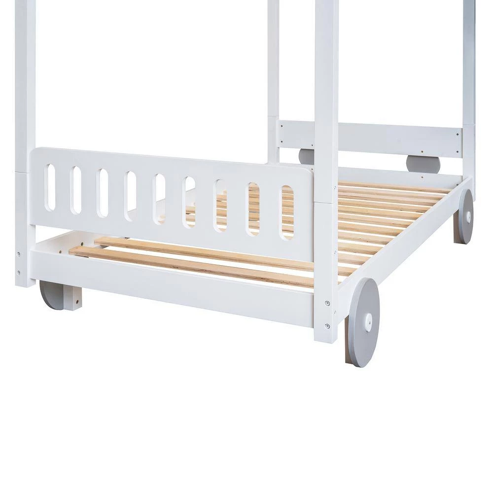 - â‘¢[With Wheels] The car shaped platform bed with wheel styling part brings a touch of fun to this bed.And this part is fixed and cannot be moved.