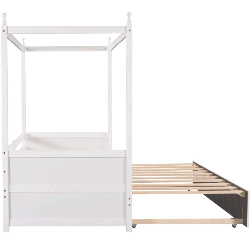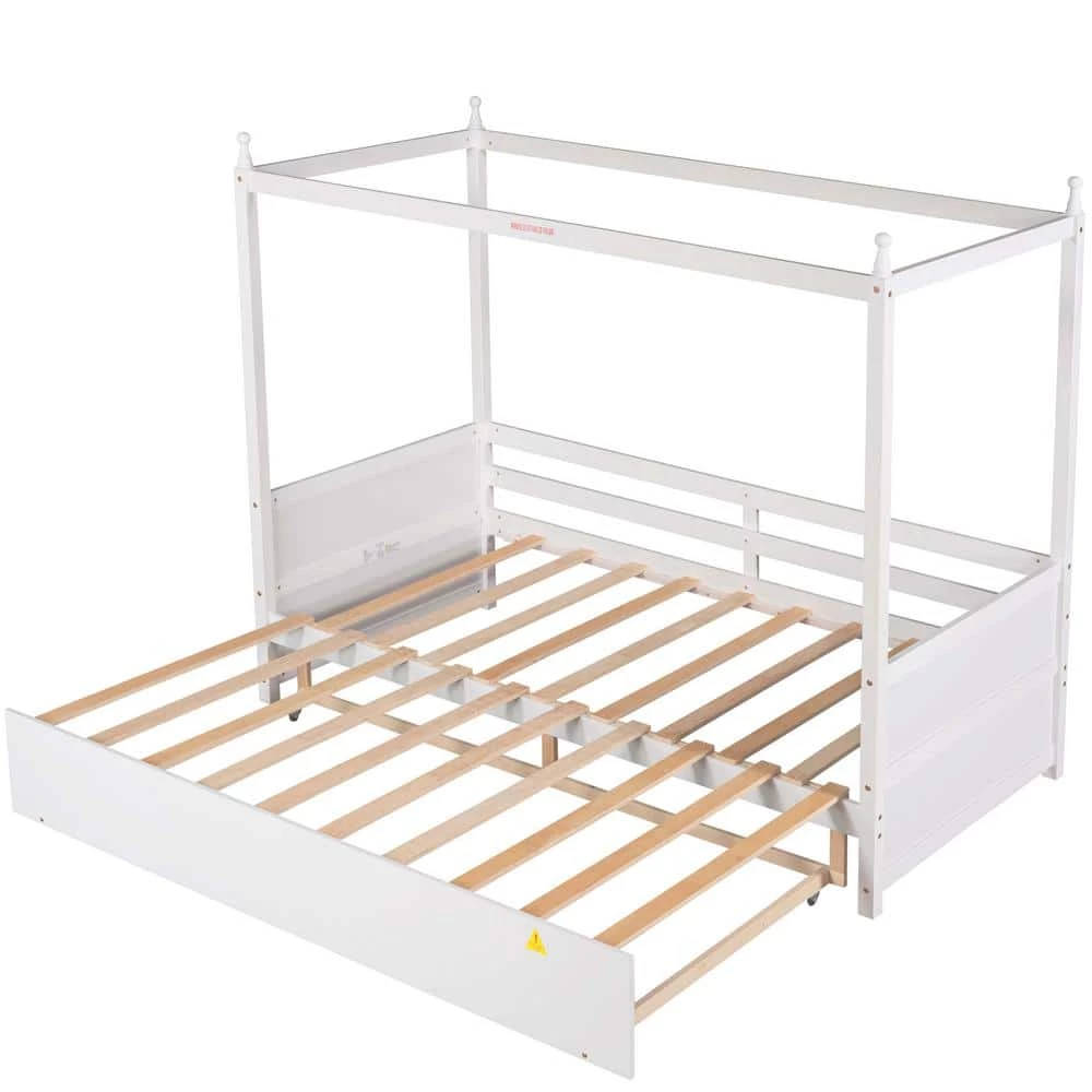 Give you the freedom to host friends in your own space with this versatile twin sized daybed, featuring a rolling design to become a double twin size bed. Crafted from pine wood and MDF, this clean lined design features an canopy frame with headboard and footboard for a hint of warmth. Thanks to this piece’s neutral tones, it’s sure to blend easily with any color palette your picks.