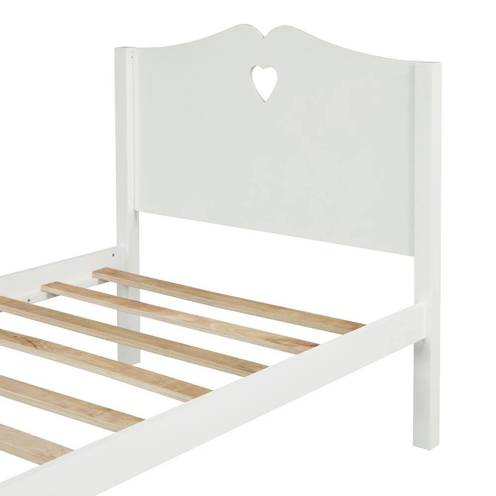 White Twin Size Wood Platform Bed with Headboard by ATHMILE - Image 4